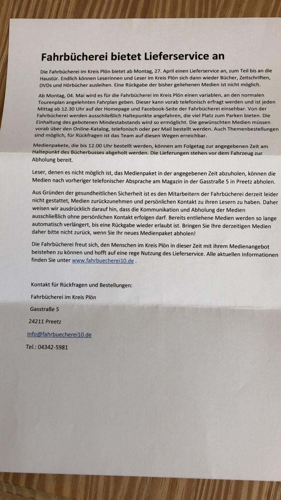 Fahrbücherei bietet Lieferservice an....